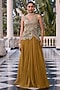Featuring an olive anarkali in organza, soft net and shantoon base with hand embroidery. Style it with juttis and statement earrings for a graceful look. Perfect for festive occasions, mehendi or family gatherings.