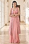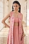 Featuring a peach jacket in organza, chanderi and shantoon base with hand embroidery. It is paired with an embroidered bustier and ruched skirt. Accentuate it with dangler earrings and heels for festive occasions or wedding ceremonies.