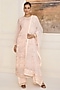 Featuring a peach kurta in silk organza base with sequins, zari, thread work. It is paired with pants and a dupatta. Style it with dangler earrings and heels for a festive occasion, engagement, sangeet or wedding ceremony.