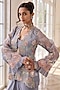 Featuring a powder blue jacket in pure organza, crepe and shantoon base with hand embroidery. It is paired with an embroidered bustier and a draped dhoti. Accentuate it with dangler earrings and heels for festive occasions or wedding ceremonies.