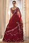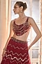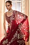 Featuring a red wine lehenga in dupion silk, organza and shantoon base with crystal hand embroidery. It is paired with an embroidered blouse and a dupatta. Accentuate it with statement jewellery and heels for a sangeet or engagement ceremony.