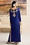 Featuring a royal blue kurta in modal satin base with zari thread work. It is paired with pants. Style it with dangler earrings and heels for a festive occasion, family gathering, sangeet or wedding ceremony.