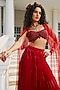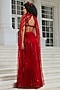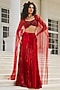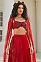 Featuring a royal red pleated skirt in glass organza and shantoon base. It is paired with a hand-embroidered bustier and a butterfly wing. Style this set with zircon jewellery, block heels and a sleek bun, an ideal choice for your wedding, cocktail or engagement ceremony.