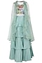 Green Printed and Embroidered Blouse with Tiered Lehenga Skirt and Cape