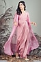 Featuring a pink draped dress in silk blend and organza base with hand embroidery. It is paired with a cape. Accentuate it with statement earrings and high heels for a refined, elegant look, perfect for cocktail parties or evening events.