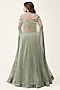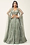 Featuring an aqua lehenga in organza base with swarovski work. It is paired with a cutwork embroidered blouse and a cape having georgette pleat detailing. Accentuate with statement jewellery and heels for a wedding or sangeet ceremony.
