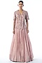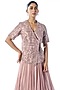 Featuring a pink wrap top in raw silk base with cutwork embroidery. It is paired with a crepe pleated skirt. Accentuate it with statement earrings and heels for a festive occasion or sangeet ceremony.