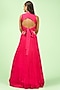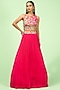 Featuring a rani blouse in bemberg silk base with thread embroidery and bow detail, including hand-dyed pearl work. It is paired with a georgette pleated lehenga having embroidered waistband. Accentuate it with statement earrings and heels for a festive occasion.