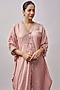 Featuring a blush pink kurta in chanderi silk base with trims and cutwork embroidery. It is paired with pants. Accentuate it with statement earrings and heels for festive occasions.
