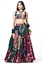 Bottle Green Crepe Floral Printed Lehenga Set