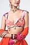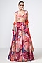 Featuring a cherry red skirt in crepe base with floral print and hand embroidery. It is paired with an embroidered blouse and an orange organza dupatta. Accentuate it with a kundan polki jewellery, a potli bag and block heels for a cocktail, sangeet or engagement ceremony.