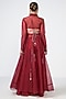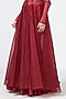 Featuring a cherry red cape in organza and dupion base with hand embroidery. It is paired with a net and crepe corset, including pants. Accentuate it with statement jewellery, a clutch bag and metallic heels for festive occasions, sangeet or engagement ceremony.
