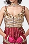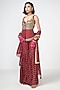 Featuring a cherry red kurta in dupion and georgette base with applique and fringes embroidery. It is paired with pants and a dupatta. Accentuate it with statement jewellery, a clutch bag and metallic heels for festive occasions, sangeet or engagement ceremony.