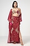 Cherry Red Organza Applique Embroidered Cape Set