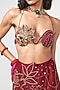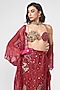 Featuring a cherry red cape in organza and georgette base with applique embroidery. It is paired with a bralette and a skirt. Accentuate it with statement jewellery, a clutch bag and metallic heels for festive occasions, sangeet or engagement ceremony.