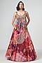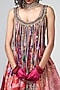 Featuring a cherry red lehenga in organza and dupion base with floral print. It is paired with an blouse having tassels hand embellishments. Accentuate it with statement jewellery, a clutch bag and pump heels for a cocktail, sangeet or engagement ceremony.