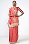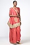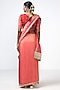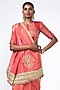 Featuring a coral saree in organza and tissue base with applique machine embroidery. It is paired with a blouse and an underskirt. Accentuate it with statement jewellery, a clutch bag and metallic heels for festive occasions, sangeet or engagement ceremony.