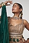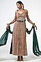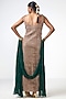 Featuring a crush gold maxi dress in organza base with applique embroidery. It is paired with a cape. Accentuate it with a chunky statement earrings, a clutch bag and metallic heels for a cocktail, sangeet or pre-wedding ceremonies.
