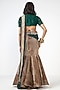 Featuring a crush golden fish-cut skirt in dupion base with sequins hand embroidery. It is paired with a bottle green embroidered blouse. Accentuate it with a kundan polki earrings, a potli bag and metallic heels for sangeet or engagement ceremony.