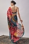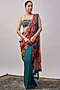 Featuring a cyan blue saree in organza base with crystals, coins and cutdana details. It is paired with a blouse. Accentuate it with statement earrings and heels for festive occasions.
