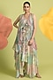 Featuring a dusty pink jacket in soft spun muslin and organza base. It is paired with a maxi dress and a belt having trim, braid and cord embellishment. Accentuate it with statement jewellery and heels for an evening look.