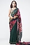 Featuring an emerald green saree in organza base with applique embroidery. Accentuate it with a blouse, statement earrings, a clutch bag and metallic heels for festive occasions, sangeet or mehendi ceremony.