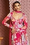 Rishi & Vibhuti features a fuchsia pink anarkali in organza base with print and scattered hand detailing. It is paired with a dupatta. Style it with meenakari earrings, embellished heels and a clutch for sangeet, housewarming ceremonies or festive celebrations.