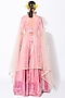 Featuring a hot pink lehenga in chanderi, raw silk, and georgette base with sequins embroidery. It is paired with a matching blouse and a dupatta.