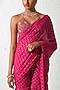 Featuring a hot pink gharara pant saree in raw silk and georgette base, including an attached pallu. It is paired with a matching bralette having zardosi hand embroidery. Accentuate it with statement jewellery and heels for a haldi ceremony or festive occasion.