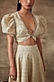 Featuring an ivory skirt in organic cotton jacquard base with a geometric pattern. It is paired with a matching cropped top having mirror work.