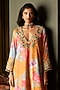 Rishi & Vibhuti features a marigold yellow kurta in crepe base with embroidery. It is paired with pants. Style it with meenakari earrings, embellished heels and a clutch for sangeet, haldi, or festive celebrations.