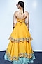 Featuring a marigold yellow lehenga in luxe silk blend base with floral embroidery and motifs detail. It is paired with a blouse and a dupatta. Accentuate it with statement earrings and heels for haldi ceremonies.