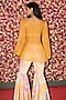 Rishi & Vibhuti features a marigold yellow jacket in organza and crepe base with cluster hand embroidery. It is paired with a bralette and gharara pants. Style it with meenakari earrings, embellished heels and a clutch for sangeet, haldi, or festive celebrations.