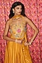 Rishi & Vibhuti features a marigold yellow anarkali in organza and crepe base with floral thread hand embroidery. It is paired with pants and a dupatta. Style it with meenakari earrings, embellished heels and a clutch for sangeet, haldi, or festive celebrations.