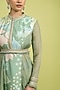 Featuring a matcha green kurta in soft spun muslin and organza base with trim and braid detail. It is paired with pants and a belt. Accentuate it with statement jewellery and heels for a festive occasion.
