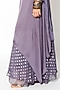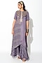 Featuring a mauve draped kurta in georgette and modal silk base with beads, zari, and thread embroidery. It is paired with matching flared pants.
