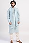 Icy Blue Embroidered Kurta With Scarf