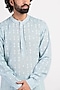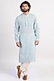 Featuring an icy blue kurta in linen base with cross pearl embroidery. It is paired with a silk scarf having tassels on the borders.