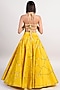 Featuring an ochre yellow flared lehenga in tafta silk with sequins embroidery. It is paired with a matching blouse having braiding on the straps.
