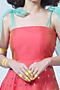 Featuring a pink midi dress in imported silk and organza base with ice blue tie-up straps and embellishments.