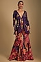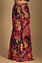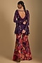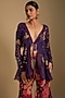 Featuring a purple peplum top in georgette and crepe base with applique fringes, sequins, coins and tassels embroidery. It is paired with flared pants. Accentuate with statement earrings and heels for an evening party or cocktail ceremony.