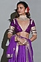 Rishi & Vibhuti features a mesmerizing Purple Lehenga Set that captivates with its elegance. The eye-catching lehenga is crafted in raw silk and net. It is paired with a blouse having trims and applique detail, including a dupatta having mirror work. Accessorize the designer lehenga set with kundan polki earrings and heels for wedding ceremonies, showcasing style and sophistication.