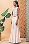 Featuring a rose gold jacket in linen base with shells, coins and metallic leaf embellishments. It is paired with matching fit and flared pants.