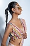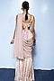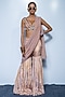 Featuring a sunset saffron colored pant saree in crepe base with print. It is paired with a blouse having tassels. Accentuate it with statement jewellery and heels for a wedding or haldi ceremony.