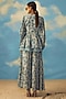 Featuring a turquoise peplum top in crepe and organza base with cutdana work. It is paired with matching pants.