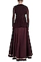Featuring a wine peplum top in georgette base. It is paired with matching full flare skirt and rose gold heavy embroidered dupatta.