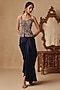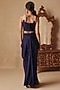 Featuring a blue draped skirt in dupion silk and satin base. It is paired with a bead hand embellished blouse. Accentuate it with polki dangler earrings and wedges for sangeet or wedding ceremonies.