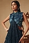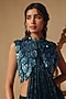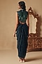 Featuring a blue cowl draped gown saree in platinoir crepe and chanderi base with sequins hand embroidery. Accentuate it with polki dangler earrings and wedges for sangeet or wedding ceremonies.