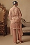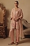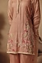 Featuring a blush pink kurta in organza shimmer and bamberg satin base with 3D floral hand embroidery. It is paired with straight pants and a dupatta. Accentuate it with polki dangler earrings and wedges for sangeet or wedding ceremonies.