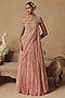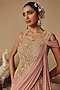 Featuring a blush pink draped gown saree in silk organza and net base with resham hand embroidery. Accentuate it with polki dangler earrings and wedges for sangeet or wedding ceremonies.